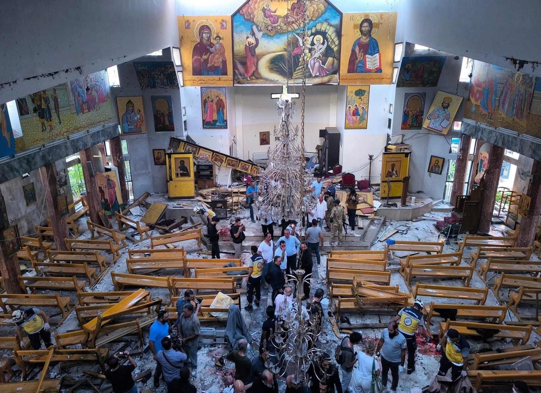 مسلم ارهابي كالعاده الذين ينسبون انفسهم كذبا وزورا وبهتانا للاديان السماوية ويدعون كذبا احترام الكتب السماوية والايمان بها .. يقوم بعملية ارهابية داخل كنيسة مار الياس وسط دمشق .