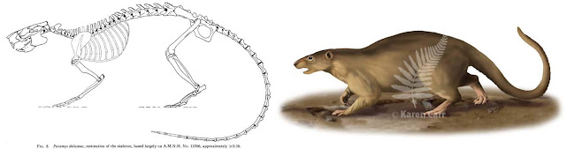 القوارض الأصغر والأكبر, إلى اليسار, نوع الفأر Micromys minutus, وإلى اليمين, خنزير الماء capibara. يعود أصل القوارض زمنياً لعصر الباليوسينيّ Paleoceno, بين ما قبل 61.7 و62.4 مليون عام, مع هذا فلم تُعطِ أوائل القوارض تلك الأصل للقوارض الحديثة, بحيث أنّ هذه الأخيرة قد ظهرت اعتباراً من انتشار لاحق يعود لعصر الإيوسين الباكر, منذ ما يقرب من 58 مليون عام. كانت أوائل القوارض " الحديثة " وبشكل شبه مؤكّد مُتحرِّكة شجرياً ويمثلها الأجناس Microparamys, Cocomys, Paramys بين أجناس أخرى. كانت كل تلك الحيوانات شبيهة بالقوارض الحديثة وربما قد تقاسمت كثير من عاداتها. أحد أوائل القوارض " الحديثة " Paramys. إعادة البناء من قبل karen carr. تسمح دراسة أصل وتنوُّع تلك الثدييات بتحقيق معرفة أكبر حول التاريخ التطوريّ لكل أنواع الثدييات وأهميتها كجماعة فقاريات بريّة مسيطرة. أدلّة: - بقايا إحفوريّة. - تحليل DNA للساعة الجزيئيّة. منشور الأصل في مدونتي http://www.ateismoespanarab.blogspot...-roedores.html |