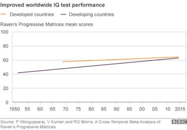 هذا التقرير المنشور على موقع البي بي سي يؤكد ان معدلات الذكاء العالمي ترتفع خاصة في الدول التي يتقدم فيها المستوى التعليمي مثل الصين والهند اما مصدرك فيقول بان معدل الذكاء في أوروبا اقل مما هو عليه في العصر الفيكتوري يعني يتحدث عن منطقة جغرافية معينه وزمن معين ويبين ان احد أسباب هذا الانخفاض هو قلة انجاب النساء ذات ال IQ المرتفع وربما هذا يفسر لنا انخفاض نسبة الذكاء في الدول المسلمة المبتلية بكثرة الإنجاب ![]() هذه الصورة توضح الارتفاع المستمر في نسب الذكاء العالمي |