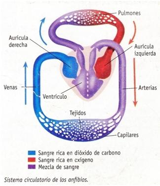 تسبّب تطوّر الفقاريات بطول تاريخه: بحدوث تغيُّرات في القلب. فلقد غدا القلب في كل مرّة أكثر تعقيداً, مع فصل أكبر بين الدم المتأكسج والدم المتأكسد. قاد هذا الانفصال المتدرج لنشوء 4 أنواع من القلوب والأنظمة القلبيّة الوعائيّة عند الفقاريات, هي: قلب الاسماك, قلب البرمائيات, قلب الزواحف, قلب الطيور والثدييات. والأكثر تعقيد بين تلك القلوب: قلوب الطيور والثدييات والتي تمتلك مضختان وتجويفان في كل مضخة. ترتبط المضخة اليمنى بالجريان الرئويّ أو الجريان الأصغر { دورة صغرى } وأما المضخة اليسرى فترتبط بالجريان المنظّم أو الجريان الأكبر { دورة كبرى }. انفصال القلب لحجرتين, كالحال عند الاسماك, ثمّ إلى 3 حجر, كالحال عند البرمائيات والزواحف, ثمّ إلى 4 حجر: قد نتج بسبب تطوّر الفقاريات من صيغة الحياة المائيّة باتجاه الحياة البريّة والتنفُّس البرّي. النص يمكن تصنيف أنواع أنظمة الجريان عند الحيوانات, وفق الآتي: أنظمة مُغلقة: يبقى الدم في هذه الحالة ضمن الاوعية الدموية { شرايين, أوردة, شعيرات .. } سامحاً بنقل أسرع وبتحكُّم أكبر بتوزيعه. يحضر هذا النوع من الانظمة عند الديدان الحلقية, رأسيات القدم وباقي الفقاريات. أنظمة مفتوحة: لا يكون الدم في هذه الانظمة موجوداً في شبكة الاوعية الدموية بشكل دائم. بحيث يسافر الدم المضخوخ من القلب عبر الاوعية الدموية ويسقي الخلايا مباشرة, ثم يعود لاحقاً عبر آليات مختلفة. يحضر هذا النوع من الانظمة عند كثير من اللافقاريات ومن بينها مفصليات الأرجل. تمتلك تلك الحيوانات قلب أو عدّة قلوب, شبكة من الاوعية الدموية وفراغ مفتوح كبير في الجسم يسمى hemocele. يصف جريان الدم: الدورة التي يخطُّها الدم منذ خروجه من القلب إلى لحظة رجوعه إليه. يُقسم هذا الجريان لنوعين: جريان دمويّ بسيط: يعبر الدم لمرّة واحدة من القلب في كل دورة. جريان دمويّ مُضاعف: يعبر الدم مرتين من القلب في كل دورة. كذلك يجري تصنيف الجريان الدمويّ, إلى: جريان دمويّ كامل: لا يوجد مزيج لدم مؤكسج ومؤكسد. جريان دمويّ ناقص: يوجد مزيج من الدم المؤكسج والمؤكسد. ![]() عند الأسماك تمتلك الاسماك نظام دوران مغلق يقتضي وجود مضخّة قلبيّة. تتكوّن الدورة الدموية من دورة وحيدة: حيث يذهب الدم من القلب إلى الخياشم, ثمّ لباقي الجسم, وبالنهاية يعود للقلب, حيث يجري بهذه الدورة دم وريديّ فقط. تمتلك جريان بسيط ومحدّد, حيث يمتلك القلب حجرتين, واحدة ذات كتلة عضليّة كبرى وتسمى البُطين وأخرى ذات كتلة عضليّة صغرى وتسمى الأُذين. يدخل الدم إلى الأُذين دون أوكسجين قادماً من أنسجة الجسم, حيث يعبر البُطين ومنه ينطلق إلى الخياشم لأكسجتها وتوزيع الدم لكامل الجسم. ينقسم القلب عند غالبيّة الأسماك بدوره إلى 4 أجزاء, هي: أولاً: الجيب الوريديّ الذي يجمع الدم الوريديّ ويدفعه نحو جيب آخر اسمه atrio. ثانياً: atrio, عبارة عن جيب عضليّ ذو اتجاه وحيد يعمل على توجيه الدم نحو البُطين. ثالثاً: البُطين, الجيب العضليّ المسؤول عن تفعيل عمل التنفُّس مع المضخة القلبيّة. رابعاً: المخروط الشريانيّ الذي يسمح بقذف الدم باتجاه الخياشم. يشكّل البُطين جيب عضليّ ذو جدران خشنة: مسؤول الضخّ باتجاه القلب. يتقلّص البُطين ويدفع الدم نحو أنبوب واسع يسمى بصلة شريانيّة. بنهاية الجزء المقابل: تتحد البصلة الشريانيّة مع وعاء دمويّ كبير يسمى الأبهر وعبره يجري الدم نحو خياشم السمك. بالمرور من الخياشم, دوران عبر الشريان الأبهر الذي يوزع الدم إلى شرايين صغيرة تسمى شريينات بُغية توجيه الدم للأنسجة والأعضاء. ثم يعبر هذا الدم عبر شعيرات دقيقة تتصل بأوعية صغيرة ولاحقا باوعية ذات حجم أكبر, حتى الوصول بالنهاية إلى القلب حيث يدخل من الأذين. يواجه الدوران البسيط مقاومة من شعيرات الخياشم, حيث يكون ضغط الدم منخفض عند دخوله في الأبهر الظهريّ, ولهذا لا يمكن توفير ضغط دمويّ عالي يسمح بمتابعة دورانه لكامل الأعضاء بالجسم. تطوّر الانواع الحيّة البريّة ذات الرئات: جعل تحقيق التوزيع الفعّال للدم بكامل الجسم ضرورة 