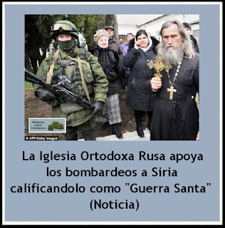 ساندت الكنيسة الآرثوذكسيّة الروسيّة يوم الأربعاء { 30 سبتمبر / أيلول من العام 2015 } الضربات الجوية التي تشنها الطائرات الروسية على مجموعات ارهابية جهادية في سورية كما ادعت الحكومة الروسيّة، وقد اعتبرتها الكنيسة بمثابة " حرب مقدسة "!!