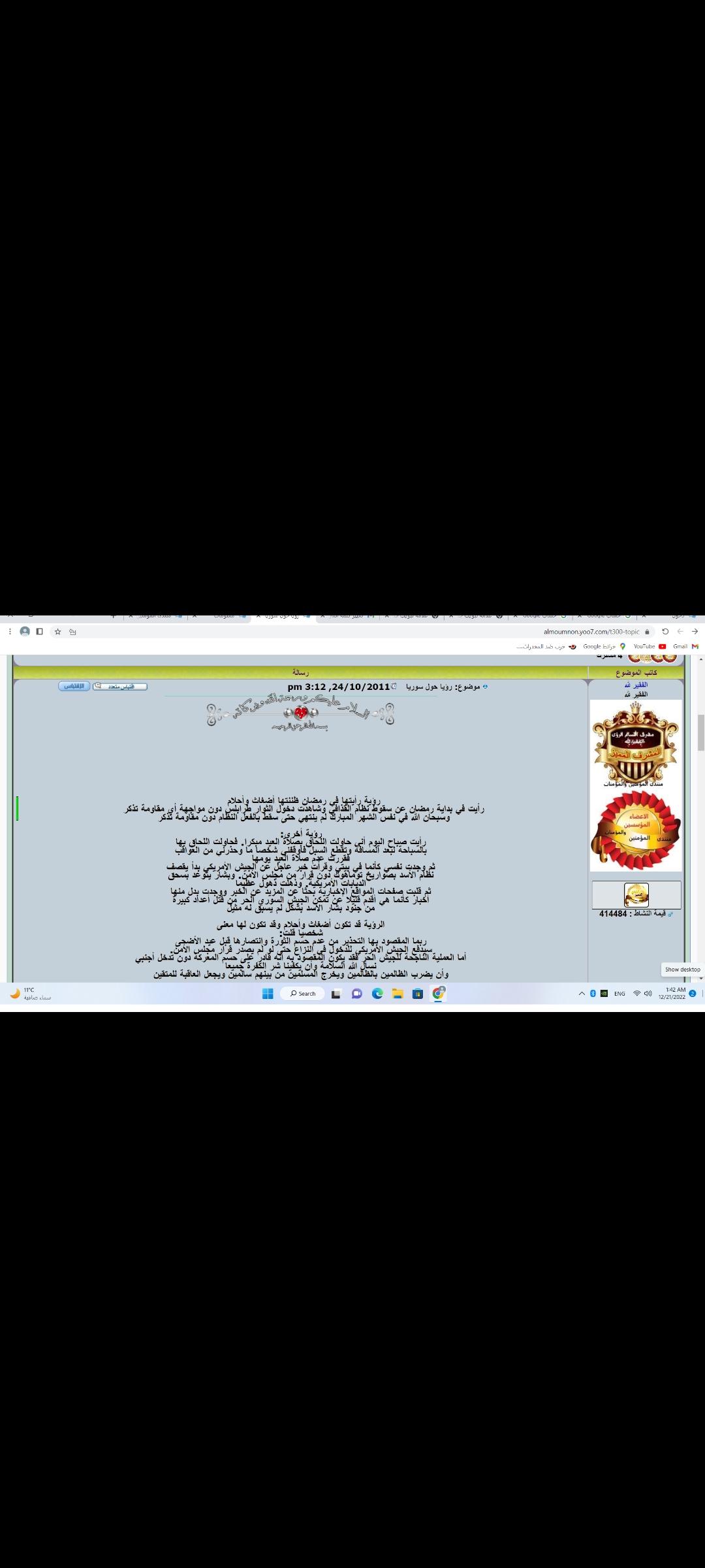 وهو كان يتوعد ترى انه سيسقط فجأة بدون مقاومة ويوجد العديد من الانظمة التي قاومت ولم تسقط مثل نظام بشار ونظام اليمن السابق وغيرها لكن انت عجيب وبالنسبة للرؤيا الثانية انا اردتك ان ترى بعينك ان هذا الشيء يحصل ولقد نجحت في اثبات ذلك لكي تعرف ان ليس كل من يقول لك رايت رؤيا وتحققت هو واهم او معاه ديجافو لقد وثقت لك هذا الشيء مع انه يحدث مع العديد من البشر وبعضهم تعود عليه لم تصدقني انه يحدث لكنك رايته بام عينك وبما انك تؤمن بالعلم اريد ان اسئلك سؤال انا وضعت لك كثير من الرؤى لاشخاص كثيرين تحققت مثلا انا وضعت 20 رؤيا الا يمكن ان يكون منهم 5صادقين والانترنت ملئ بمثل هذه القصص الا نستطيع ان نخرج من كل 100 عشرين صادقين ثم ليس كل شخص يستطيع ان يوثق رؤياه لانه لايكون يعتقد انها رؤيا ولكن يعتقد انها حلم عادي حتى يراها على ارض الواقع وقتها يعلم انها رؤية لذلك اكثر الناس لايوثقون الرؤى الا بعد ان تحدث وها قد رايت مثالا بسيطا اليوم شخص وثق شيء وحدث بعد سبع سنين ساكمل معك بعد الاستيقاظ بأذن الله |