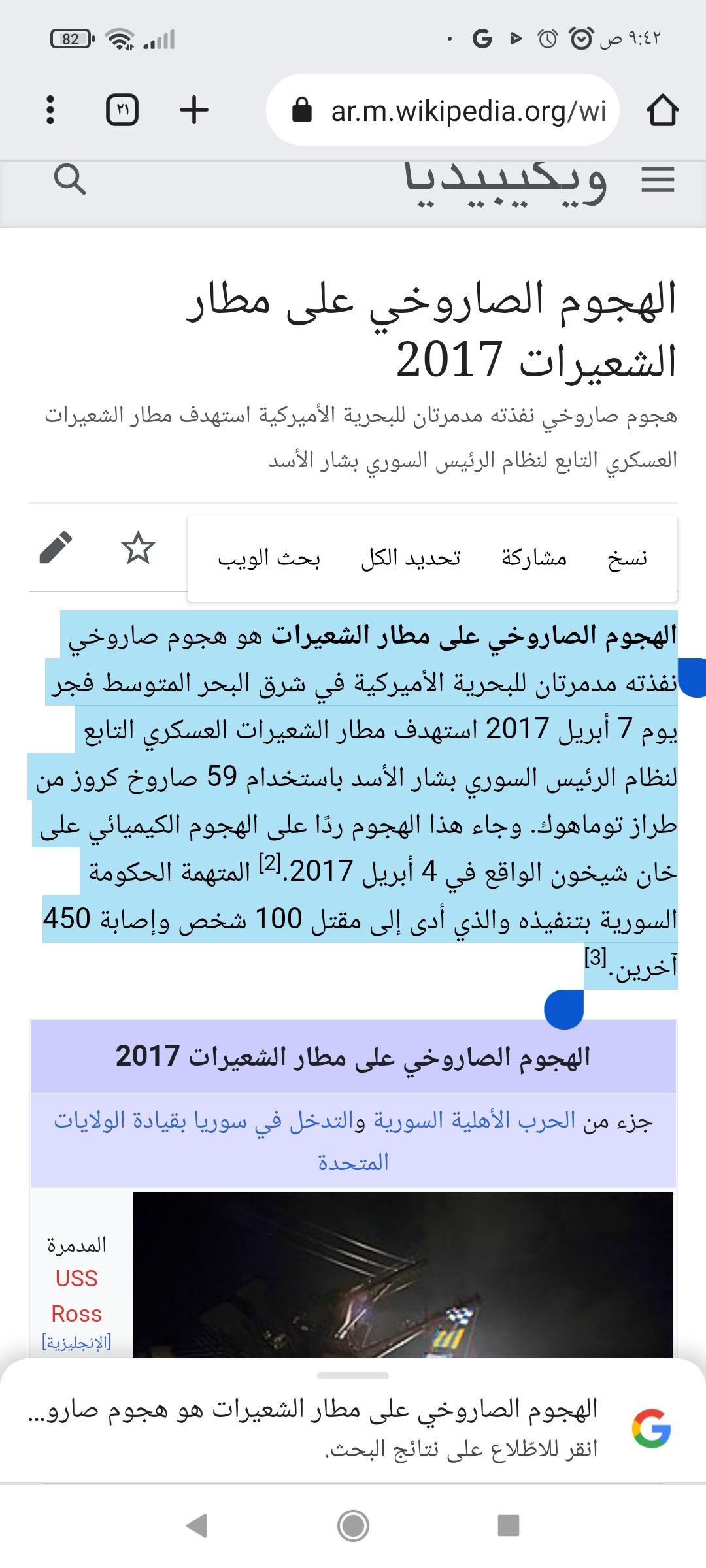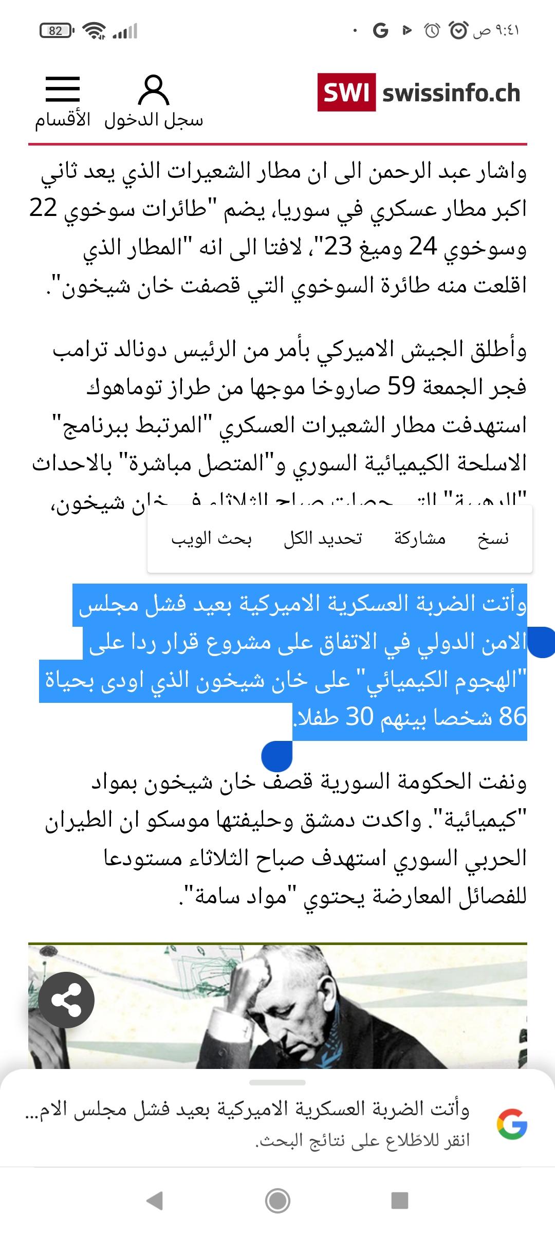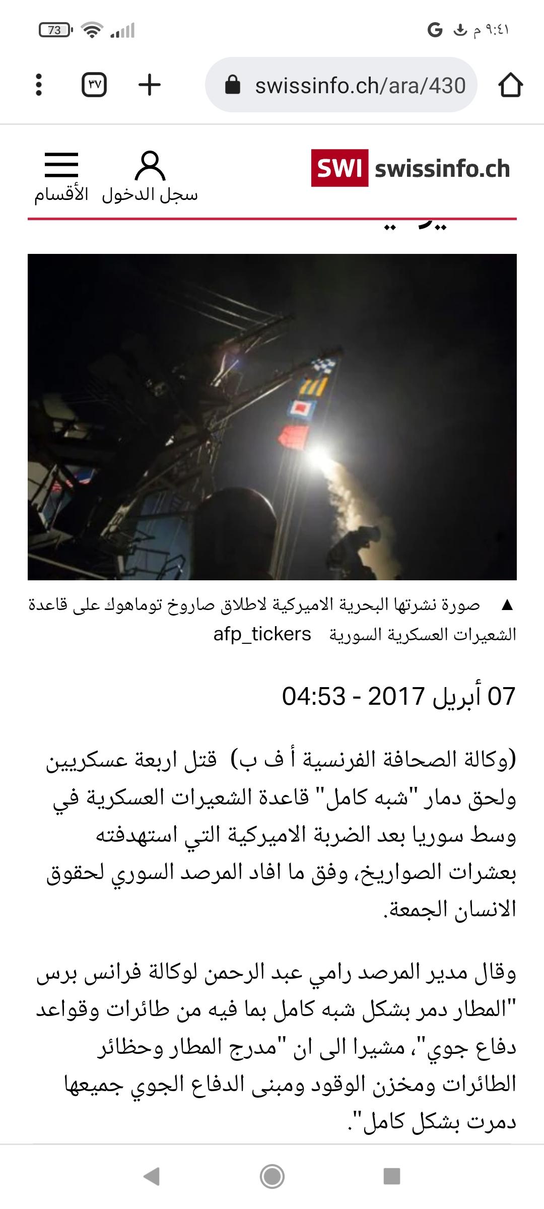 أعطني رابط الخبر الذي تحققت فيه الرؤية، كي أقارن التفاصيل وأرى التاريخ أقصد خبر القصف بالتوماهوك دون قرار من مجلس الأمن |