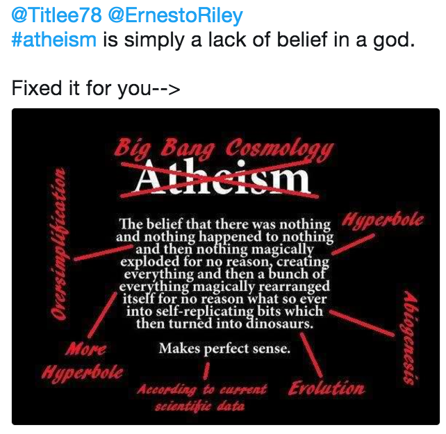 ![]() عاجزين تماما علي التفكير وفقط تنقلون الخرافات. الالحاد هو عدم الايمان، هو عكس الايمان، والاعتقاد. انتم تدعون شيئ، قدموا دليل علية، ولكن انها عملية نصب واحتيال، والكذب من وراء استجواباتكم، وكذبكم. تحياتي |