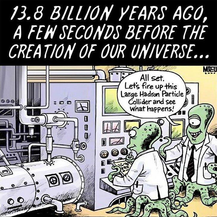 إن لم تنفِ وجود صانع، فالكون إذاً صنيعة هذا الصانع. ومنطقياً لا يمكن أن يصنع الكونَ صانعٌ إلا إذا كان هذا الصانع مطلق القدرة. فناقص العلم بصناعة الساعات، ليس له القدرة على صنع ساعة. [QUOTE] تحياتي طبقا لما رصدناة من الكون، الطاقة الكلية له تساوي الصفر:Hartle-Hawking كون غير حادث له بداية، ولكن أزلي ![]() وبالتالي ممكن للكون ان ينشأ بطريقة طبيعية لو وجدت العوامل والأحداث الملائمة.. في الحقيقة ممكن ان يتكون داخل الأفق لثقب أسود، وأيضا داخل معمل الهادرون كوليدر.. ![]() فتلك الصورة ليست فقط نكتة، ولكن شيئ محتمل... الطاقة الكلية للكون تساوي الصفر، وبالتالي ممكن ان ينشأ بطريقة طبيعية او كحادث عرضي لتجربة تقيمها حضارة متطورة... في الحقيقة لو نشأ كون ما داخل الهادرون كوليدر، لن نرصدة.. في الحقيقة داخل الكون سوف يرصد ككون متمدد مثل كوننا، ولكن لأسباب هندسة الفراغ، سوف نرصدة ينكمش، وبما ان الزمن والمكان الخاص بهذا الكون مختلفين عنا، ربما لن نشاهدة أطلاقا.. فكما تري، ممكن ان يكون حادث عرضي، او نشأ داخل ثقب أسود في كون آخر، وهكذا... كل هذا لا يتطلب صانع، او حتي وجود صانع هنا ليس بأله مطلق القدرة.... فالكون هنا لا يتطلب كائن مطلق القدرة اطلاقا.. لو كان الكون يتطلب ذلك لكنت وافقتك علي ذلك... اقتباس: