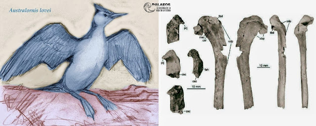 اكتشاف الطائر البحريّ الأقدم في الحقبة المُعاصرة واحد من تلك الطيور اسمه Hesperornis والتي عاشت في العصر الكريتاسي، كان شكلها بشع وامتلكت أسنان!! تُشكّل الطيور جماعة هائلة التنوُّع، لكنها وكغالبيّة الأنواع الحيّة تقريباً، كانت أكثر غنى في التنوُّع في الماضي السحيق. لم تكن كل تلك الطيور قادرة على الطيران، حيث يمكن أن نعثر في العصر الكريتاسي على أمثلة تكيُّف بحريّ لمجموعة من الطيور، لكن تلك الطيور لا تنتمي لأيّ مجموعة طيور حديثة، بل تُشكّل طيور بدائيّة لم تُعطي الأصل للطيور الراهنة الحديثة، كما أنها امتلكت أسنان! لفهم هذا علينا النظر إلى شجرة النشوء التطوريّة ومخطط تشعُّب الطيور { في الأسفل }، كما تلاحظون تكون الطيور هي Avialae مع استبعاد أبناء عمومتهم raptores. لكن الطيور الحديثة والتي تعدّ أكثر من 9000 نوع فاسمها Neornithes والممثّلة في الرسم عند الرمز B. الآن نتحدث عن الطائر البحريّ الأقدم والذي جرى اكتشافه في نيوزيلنده وأطلقوا عليه اسم Australornis lovei، وتمّ نشر المعلومات حوله في مجلة الجمعية الملكيّة. يعود هذا الطائر إلى حقبة الباليوسيني، ونراه في الصورة التالية: يكون هذا الطائر مُتكيِّفاً مع الحياة البحرية / المائيّة، ويُعتبر من أقدم الطيور المُكتشفة حتى الآن وبعد انقراض الديناصورات. يتبع ![]() ![]() |