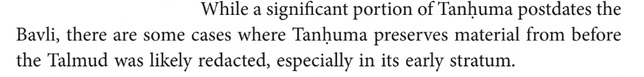 و يقول Marc Bregman,عن مدراش تنحما فى كتابه The Tanhuma-Yelammedenu Literature: Studies in the Evolution of the Versions. الذى فَصًل المسألة اقتباس: