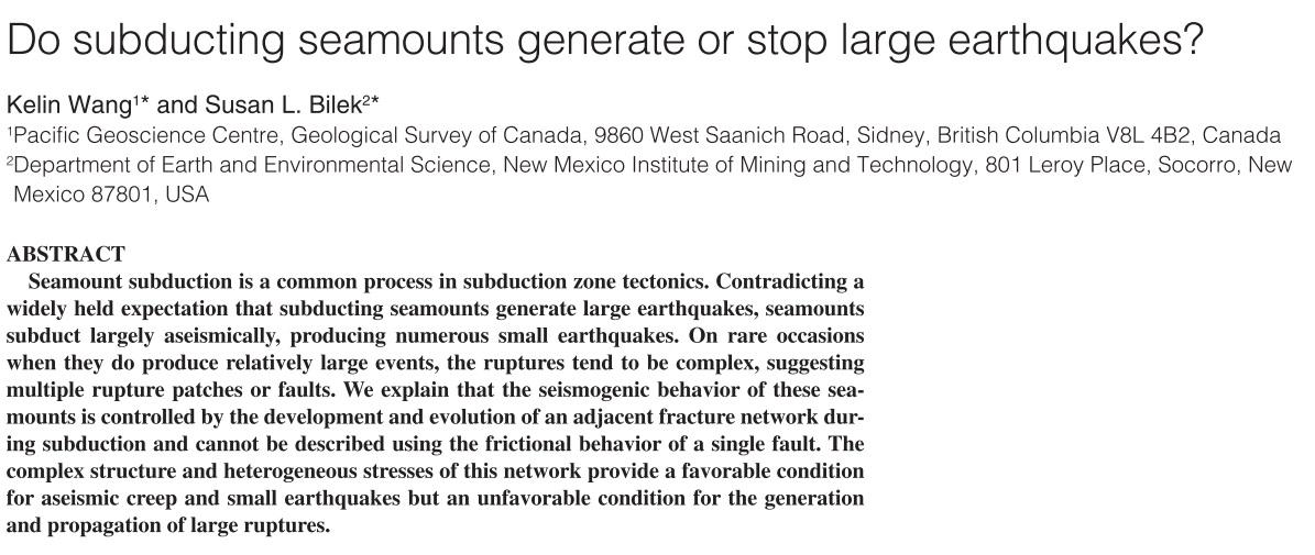 https://en.m.wikipedia.org/wiki/1700...dia_earthquake هذه ال megathrust حدثت في عام 1700 Cascadia مثلاً لديها seamounts ولم تمنع حدوث الهزه العنيفه هذه الورقه العلميه توضح ايضاً ان الseamounts ممكن يكونوا عامل مانع او عامل محفز... https://www.whoi.edu/cms/files/yang_...unt_143004.pdf |
