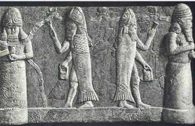 الدكتور خزعل الماجدي يشرح كيف تحول "يوانس" السومري ,الذي هو مساعد اللاه "اينكي" للمياه الجوفية, الى النبي "يونس" الذي ابتلعته سمكة عند كتاب التوراة. و ذلك لان "يوانس" كان يُصور كما لو ان سمكة تبتلعه او على الاقل هذا ما فهموه العبرانيون من الصور. في الحقيقة كان يرتدي لباس سمكة و في صور اخرى مبالغة يُصور نصف بشر نصف سمكة ، فاعتقدوا انه تبتلعه سمكة.